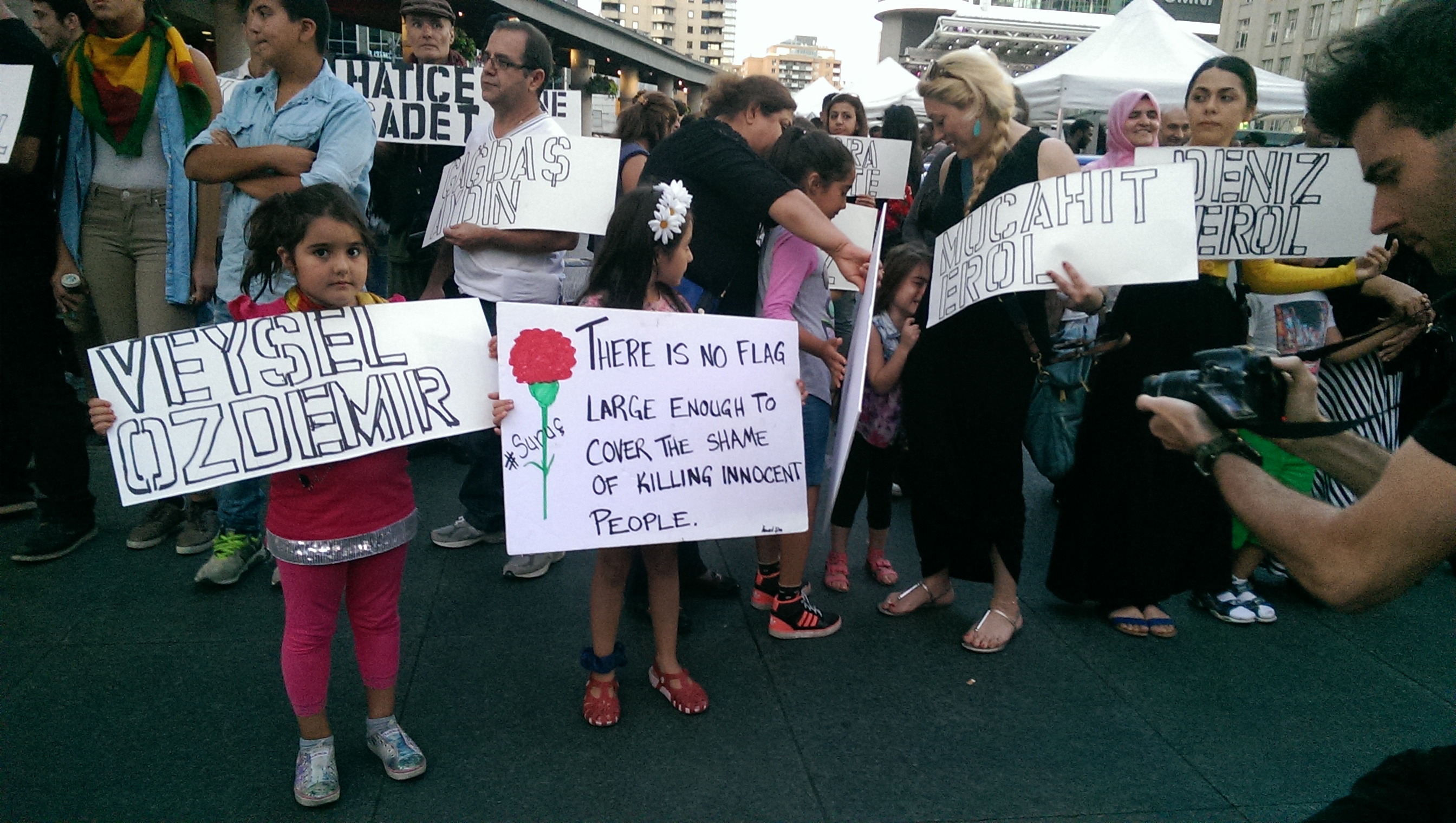 On Saturday 01 August, a vigil was held in Toronto in memory of the victims of the Suruc suicide bombing. The Rojava Solidarity Collective produced this video in support of the vigil and international solidarity for the rebuilding of Kobane.