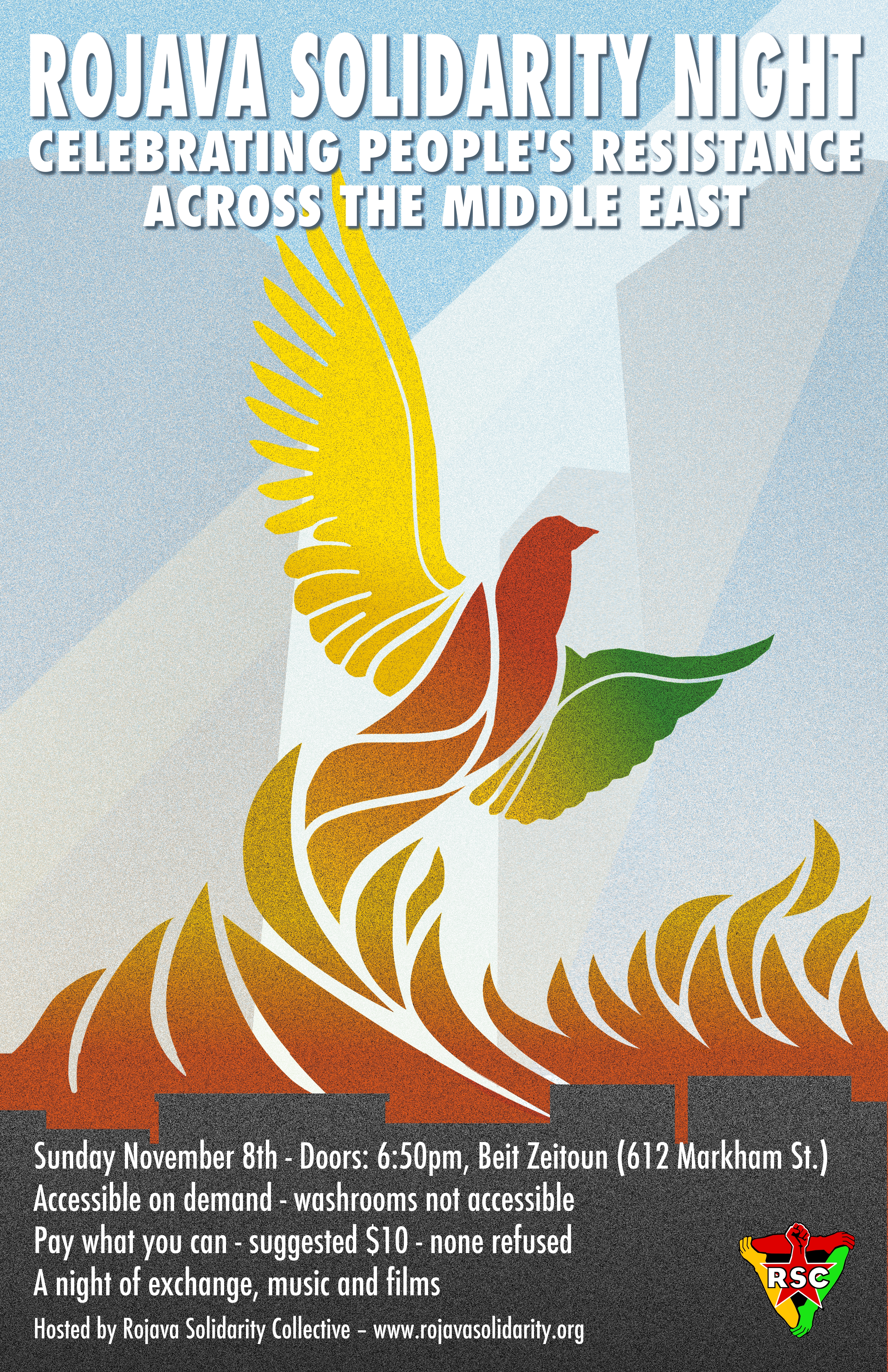 ollective is pleased to announce our Rojava Solidarity Night this Sunday, November 8th at Beit Zatoun (612 Markham St.).